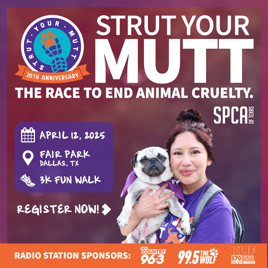 Get ready to strut your stuff with your furry best friend at Strut Your Mutt, The Race to End Animal Cruelty on Saturday, April 12th at Fair Park in Dallas.